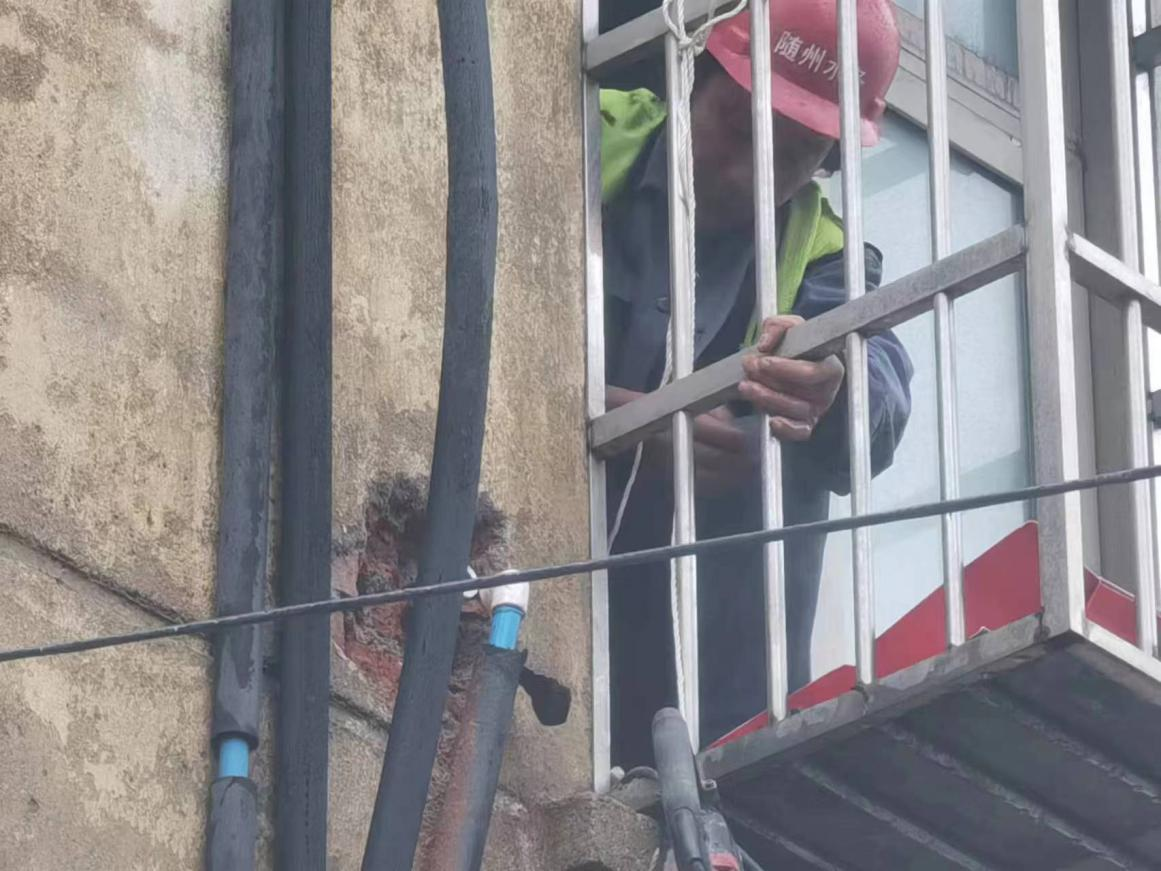 這里水管漏了,外面的墻都打濕了,麻煩你們快來(lái)看看啊!”320日上午8點(diǎn)30分,建設(shè)工程公司接到市民的求助電話,稱他家墻外有根水管在向外冒水。運(yùn)維中心牽頭人張遠(yuǎn)燈立即安排維修人員第一時(shí)間趕往現(xiàn)場(chǎng)。經(jīng)過(guò)詢問(wèn)和現(xiàn)場(chǎng)查看后,發(fā)現(xiàn)事故原因是2樓外墻進(jìn)屋處彎頭漏水,但該項(xiàng)維修內(nèi)容本不屬于公司的維修范疇。維修人員看到無(wú)助的老人,便毫不猶豫地爬上2樓陽(yáng)臺(tái),在狹窄的空間內(nèi)艱難地為老人更換破損管件是用戶房屋內(nèi)部管道漏水,水務(wù)人本著想用戶所想,急用戶所急的服務(wù)精神,不計(jì)較、不推諉的幫助用戶及時(shí)解決漏水難題。