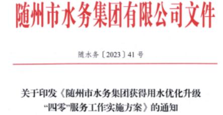 2.關(guān)于印發(fā)《隨州市水務(wù)集團獲得用水優(yōu)化升級四零服務(wù)工作實施方案》的通知
